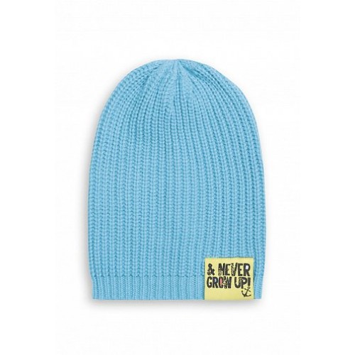 Крупная вязка, по нижнему краю контрастный декоративный лейбл, свободный крой позволяет уложить шапку разными способами.