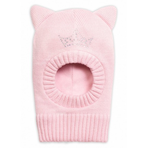 Шапка для девочек. Шапка-капор, подклад из флиса. Два в одном: шапка и манишка! Декор - корона из страз, на макушке - ушки.