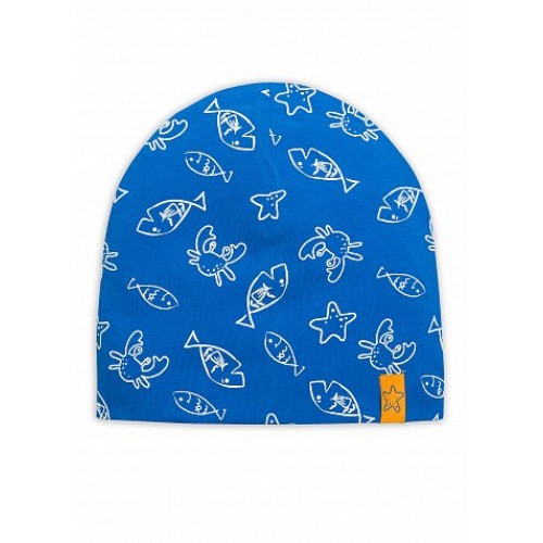 Незаменимая, удобная двойная шапка из эластичного хлопкового материала. По всему изделию принт-рыбки в скетчевой технике, спереди небольшая нашивка.