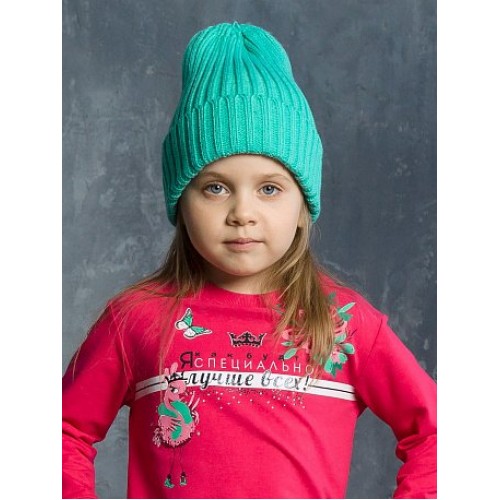 Шапка для девочек. Шапка с отворотом; слегка вытянута вверх.