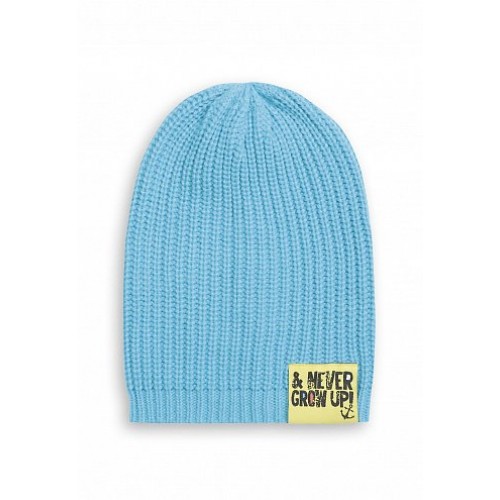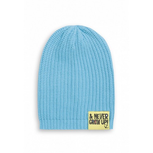 Крупная вязка, по нижнему краю контрастный декоративный лейбл, свободный крой позволяет уложить шапку разными способами.