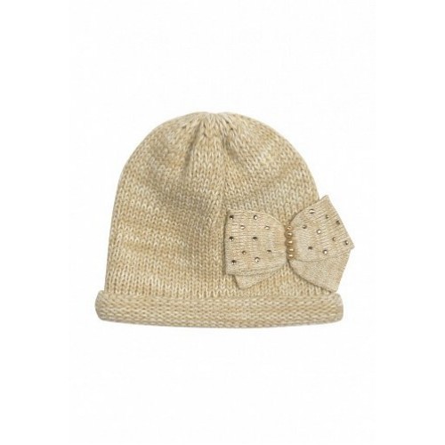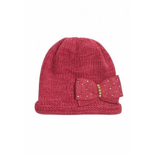 Шапка для девочек вязаная. Особенности: пришивной бант, стразы, бусины