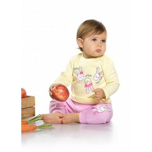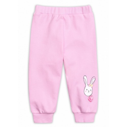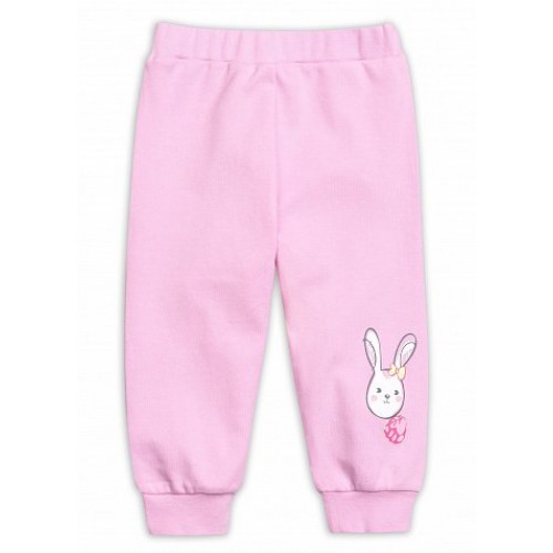 Брюки. Хлопковые штанишки. Штанишки выполнены в нежном розовом цвете, по переду на штанине принт зайчика.