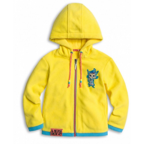 Полностью из флиса, с декоративной двуцветной молнией, капюшон регулируется с помощью шнурка, внутренние швы капюшона закрыты хлопковым подкладом.