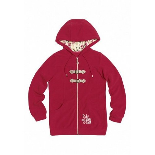 Куртка для девочек с капюшоном, на молнии. Особенности: вышивка на водорастворимой пленке, декор. застежки из иск. кожи