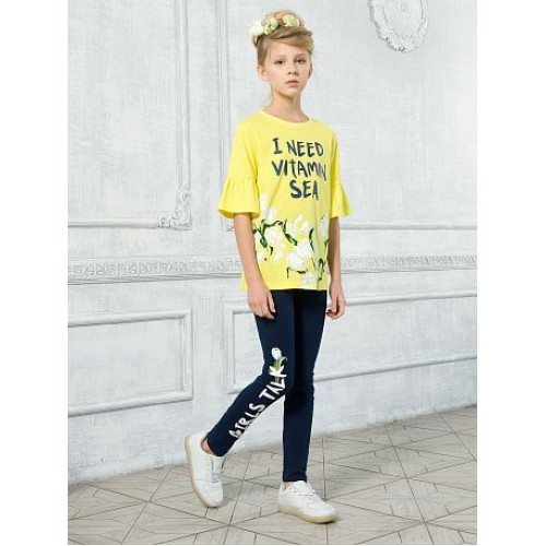 Футболка для девочек. Новый трикотаж, мягкий и пластичный. Силуэт трапеция, рукав втачной с воланом по низу. Стойкий мягкий soft-принт- имитация нашивки. Перевод: "Мне нужен витамин Море"