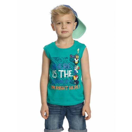 Майка для мальчиков. Классическая майка прямого силуэта не стесняющего движений ребенка. Перевод центрального принта "Ну где лето?? Я уже здесь!"