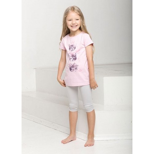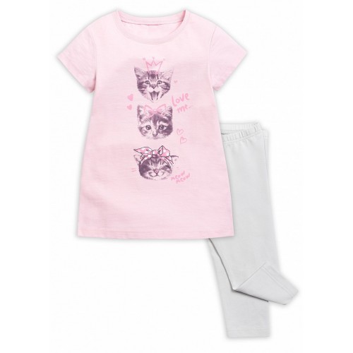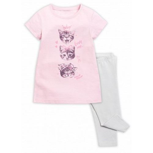 Пижама для девочек: туника и лосины. На тунике центральный принт милых инстаграмных котиков.