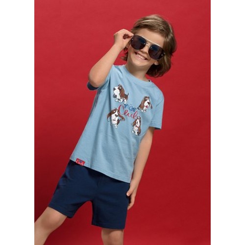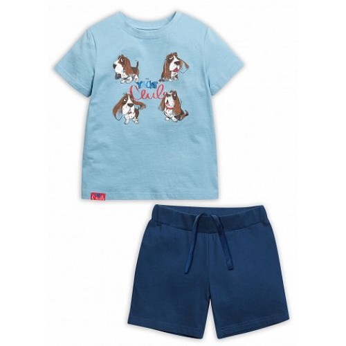 Комплект для мальчиков: футболка и шорты. Футболка умеренного объема; шорты без карманов, внутренняя регулировка по поясу.