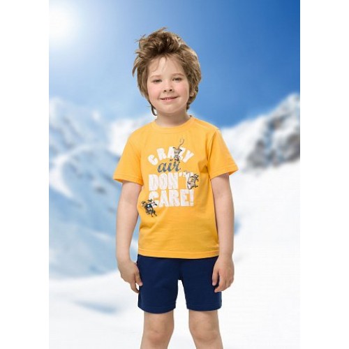Комплект для мальчиков: футболка и шорты. Футболка классического кроя с ярким мультяшным принтом. Шорты с регулировкой ширины по поясу.
