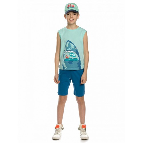 Комплект для мальчиков: майка и шорты. Классическая майка прямого силуэта не стесняющего движений ребенка. Перевод центрального принта "Поймай меня". Шорты с внутренней регулировкой по поясу.