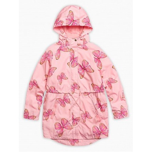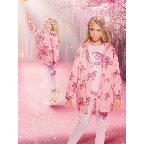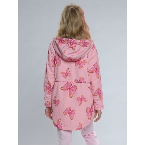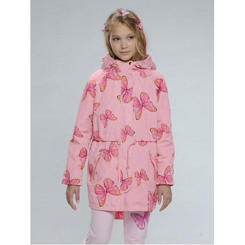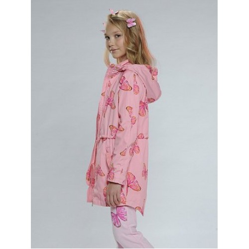 Ветровка для девочек.Температурный режим:   до +10°С.  Удлинённая парка с перепадом длины по спинке и переду. Рукава «реглан». Двухшовный неотстегивающийся капюшон с регулировкой объема. Трикотажный воротник и внутренняя манжета рукава из рибаны. Курточная ткань с двусторонним водооталкивающим покрытием. Тракторные молнии. Широкая ветрозащитная планка. Боковые карманы на молнии, с пуллером из тесьмы. Кулиска со шнуром регулирует объем парки по талии.