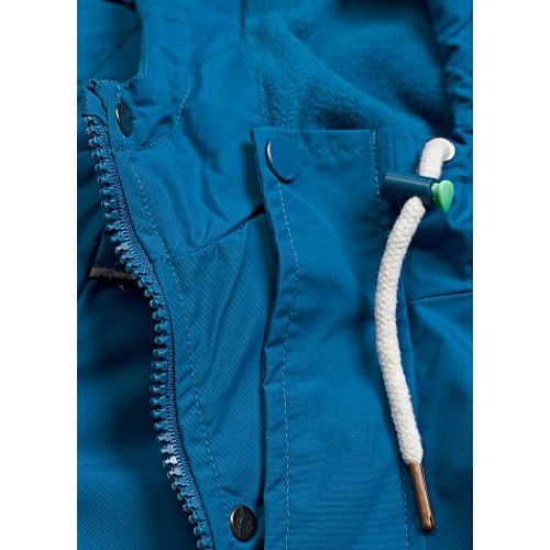 Материал верха: плотный и хорошо держащий форму, с водоотталкивающим покрытием. Подклад: флис в капюшоне и по стану, подклад из полиэстера в рукавах и ниже линии талии - для легкого скольжения в области бедер. В зоне максимального трения обладает легкой степенью грязеотталкивания. Утеплитель: под подклад из полиэстера поставлен легкий синтепон 60 г/м2.