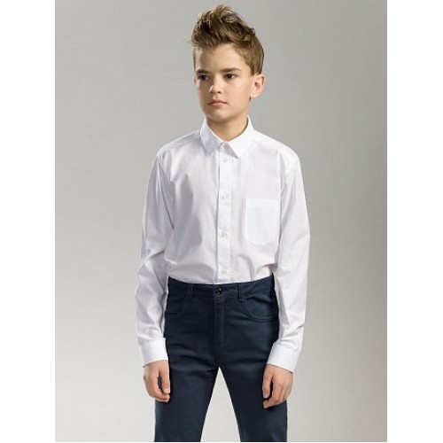 Сорочка для мальчиков. Классическая сорочка прямого силуэта с актуальным воротником типа Windsor. Слева нагрудный карман традиционной формы.