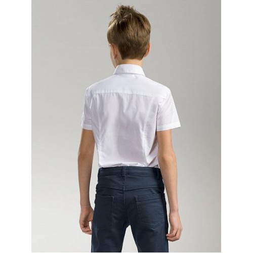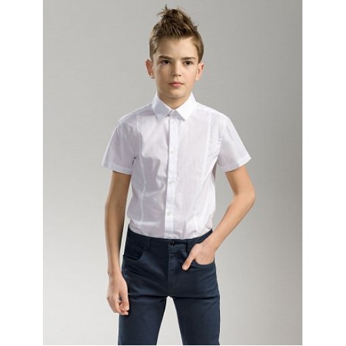 Сорочка с коротким рукавом для мальчиков. Сорочка малого обьема полуприлегающего силуэта. Вертикальные рельефы по переду и спинке. Воротник типа Windsor.