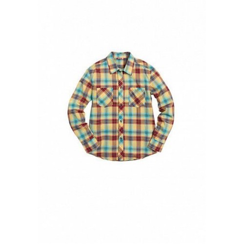 Яркая сорочка из хлопка в клетку, направленную в разные стороны на разных деталях, что делает модель интересной и стильной.