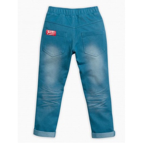 Брюки для мальчиков. Брюки для мальчиков. Брюки "имитация джинсы"; по переду изделия полукруглые боковые карманы, кокетка и накладные карманы по спинке, пояс на резине с регулировкой ширины, отвороты по низу