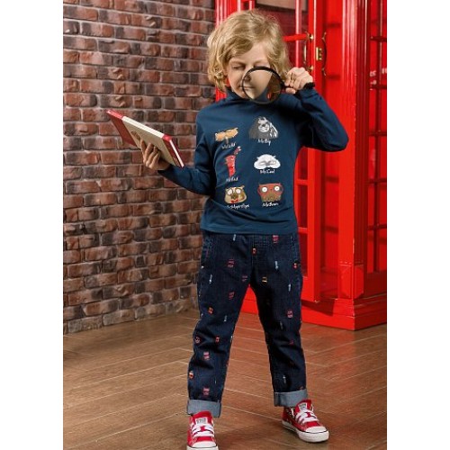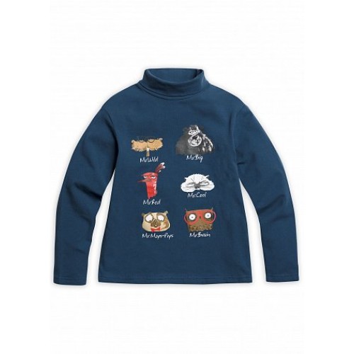 Водолазка для мальчиков. Новый, более свободный силуэт с мягкой линией плеча. Центральный принт с забавными "умными" героями.