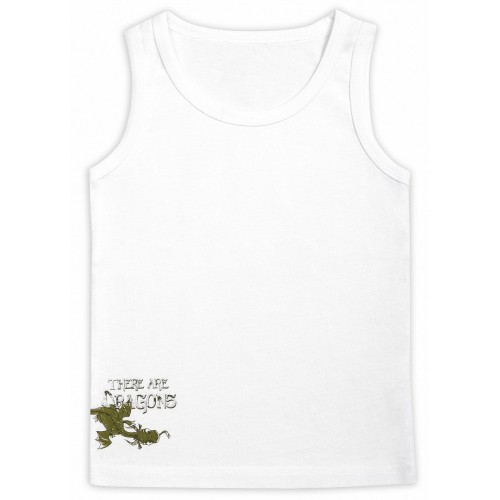 Классическая белая майка для мальчиков из 100% хлопка с принтом драокна по низу изделия.