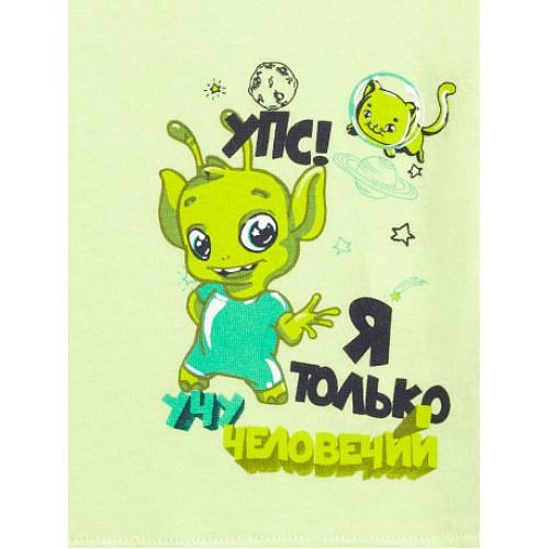 Майка для мальчиков. Классическая майка на широких лямках. Центральный принт - пришелец и надпись "Упс! Я только учу человечий".