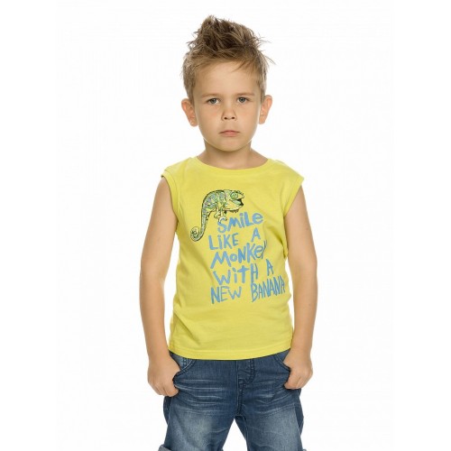 Майка для мальчиков. Классическая майка прямого силуэта не стесняющего движений ребенка. Перевод центрального принта "Улыбайся, как обезьянка с новым бананом".