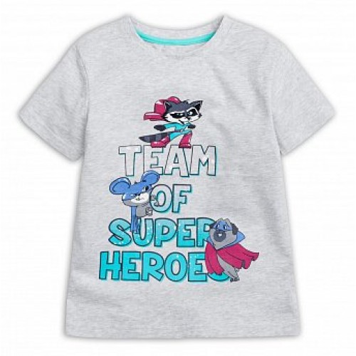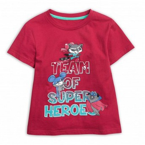 Классическая футболка с декорированным принтом енота-супергероя.
