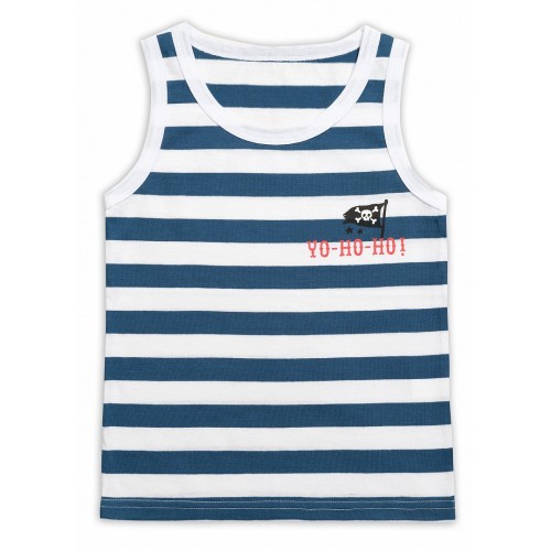 Классическая майка для мальчиков из 100-го хлопка, в морском стиле и принтом в пиратской тематике.