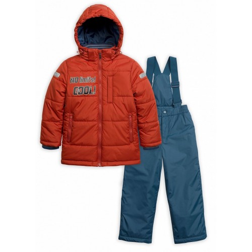 Комплект для мальчиков: куртка и комбинезон. Рекомендованный температурный режим: не ниже -15°С. Абсолютно новая ассортиментная группа: утепленный комплект. Куртка — осенняя, прямого силуэта с горизонтальными настрочками. Спереди по низу светоотражающий принт. Капюшон отстегивается. Боковые карманы на молнии. Внутренний шнур со стоппером регулирует объем куртки по низу. Внутренняя манжета по низу рукава из двухцветной рибаны. Низ  — осенний полукомбинезон. Плотно прилегает к линии груди. В боковых швах вставки из рибаны. Широкая подгибка низа брюк из основного материала — можно носить как манжету и регулировать длину.