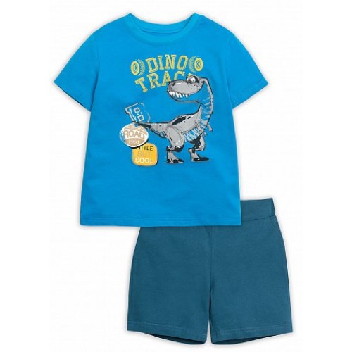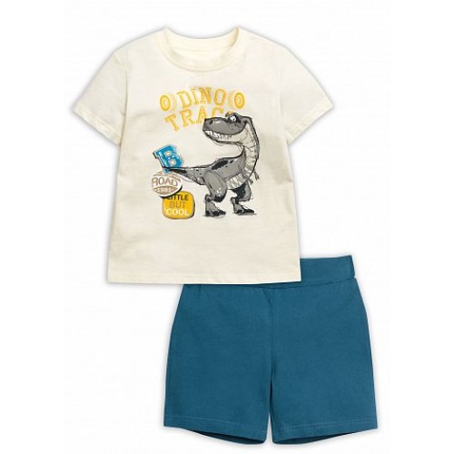 Комплект для мальчиков: футболка и шорты. Классическая футболка из тонкого хлопка малого объёма. Декорирована крупным центральным принтом. Шорты простые, без карманов, с внутренней регулировкой по линии талии.