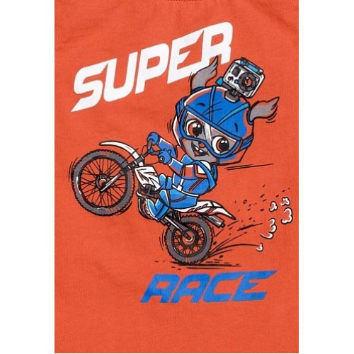 Яркий комплект для решительных мальчишек, которые любят экстремальный спорт, пока катаются на велосипеде, но вовсю мечтают о своем мотоцикле. Милый зайчик-супергонщик — круто и по-детски одновременно! Ребенок в восторге!