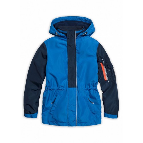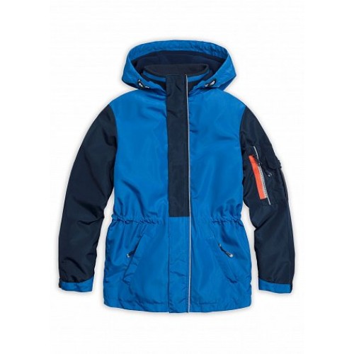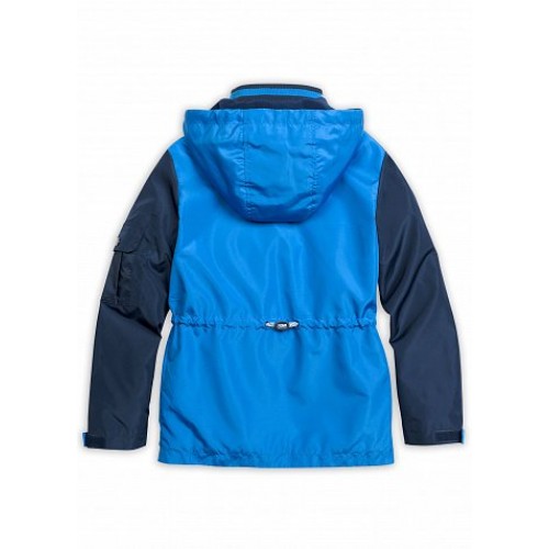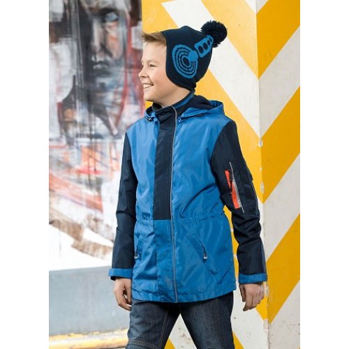 Ветровка для мальчиков. Температурный режим: не ниже +5°С. Модный колорблокинг. Материал верха плотная и хорошо держащая форму курточная ткань. Подклад: флис в капюшоне и по стану, полиэстер в рукавах - для лёгкого надевания. Кожаные стопперы для регулировки объема капюшона в лицевой части, капюшон отстегивается. Декоративная планка, маскирующая молнию для пристегивания капюшона. Трикотажный воротник из рибаны. Пластиковая двухцветная молния легко застегивается. Фиксирующая строчка предохраняет планку от «заедания» в процессе застегивания. Ветрозащитная планка на молнии с защитой подбородка от зажима тканевым стоппером. Группа из двух карманов (объемный с клапаном и врезной на молнии) на рукаве. Световозвращающие канты. Внутреняя регулировка объема по линии талии. Боковые карманы с наклонной линией входа, на молнии, снаружи оформлены клапаном. Низ рукава регулируется фигурной патой на липе. Внутренняя манжета из рибаны.