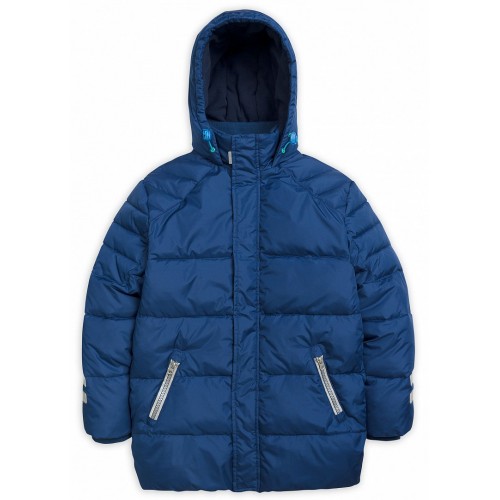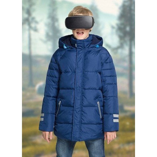 Куртка для мальчиков. Рекомендованный температурный режим: не ниже -25°С. Куртка прямого силуэта, слегка зауженная к низу, длиной ниже линии бедер. Спинка с отрезной кокеткой, создающей дополнительный комфорт и удобство в носке изделия. Горизонтальные строчки в сочетании с утеплителем синтепух создают эффект пуховика. Капюшон не отстегивается. Трикотажный воротник из рибаны. Боковые карманы с наклонной линией входа на молнии. Внутренняя манжета по низу рукава из рибаны.