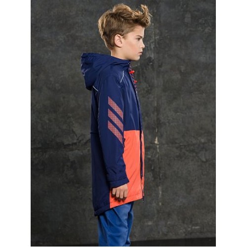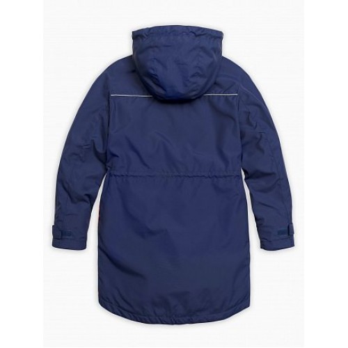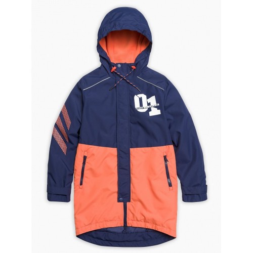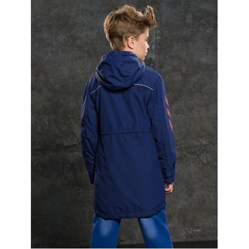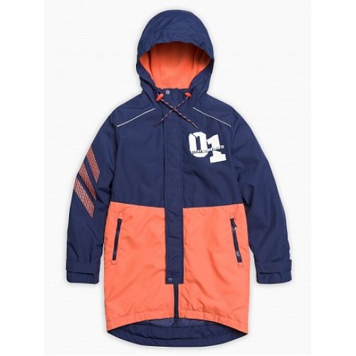 Плащ для мальчиков. Температурный режим: до +5°С. Утепленный плащ. Удлинённый силуэт-парка с перепадом длины по спинке и переду. Многозональный подклад: флис по стану, утеплитель из легкого синтепона в рукавах и ниже линии талии. Теплый двухшовный неотстегивающийся капюшон с регулировкой объема. Курточная ткань с двусторонним водооталкивающим покрытием. Широкая ветрозащитная планка на кнопках. Тракторная молния расстегивается в двух направлениях. Боковые карманы на молнии, с ограничителями. Внутреняя регулировка по линии талии шнуром со стоппером. Низ рукава регулируется патой на липе, внутренняя манжета из рибаны. Световозвращающие канты.