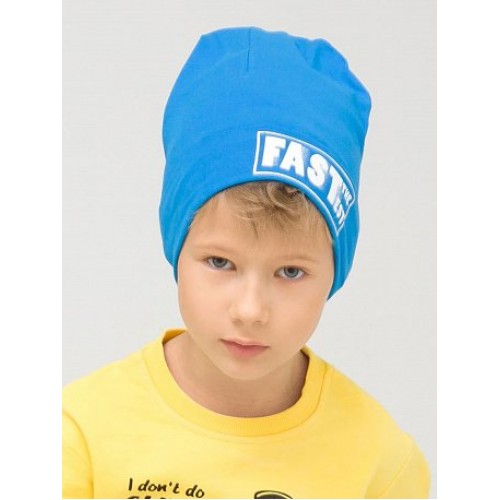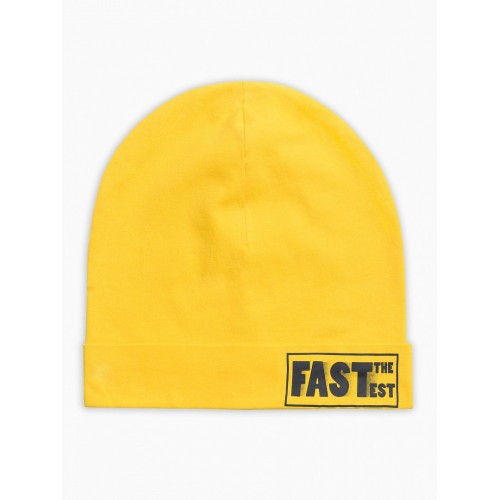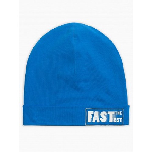 Шапка для мальчиков. Легкая двойная трикотажная шапка с отворотом, перевод "Самый быстрый"