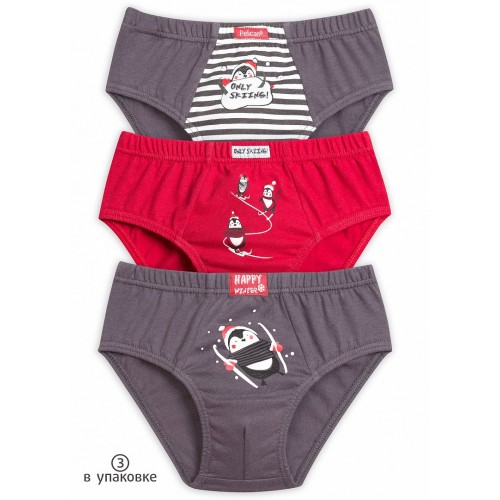 комплект из 3-х трусов-слипов для мальчиков с прикольным принтом - пингвины-лыжники.