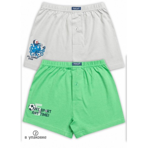 Комплект из двух трусов-боксеров для мальчиков, 100% хлопок. Боксеры выполнены в серо-зелёных тонах с принтами в футбольной тематике.