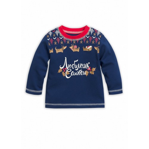 Джемпер трикотажный для мальчиков; принт собачки-символ года, контрастная отстрочка