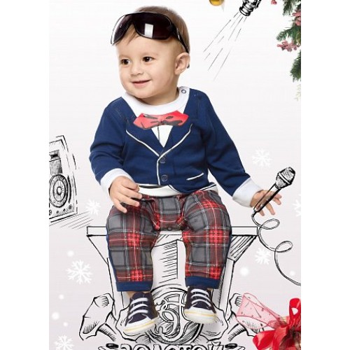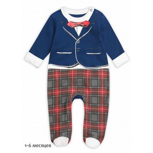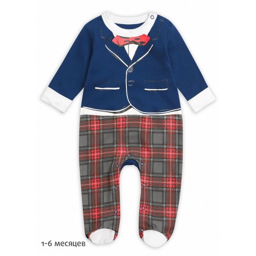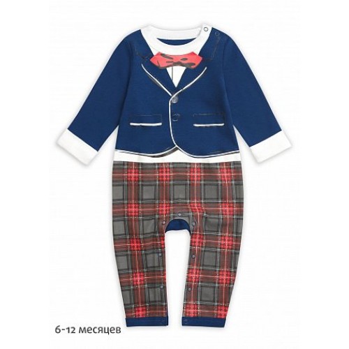 Комбинезон для мальчиков. Комбинезон имитирует элегантный костюм. Верхняя часть изделия создаёт эффект белой рубашки, выглядывающей из-под пиджака, за счёт отворачивающихся манжет. Низ выполнен в виде клетчатых брюк.
