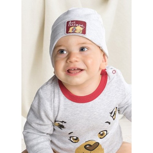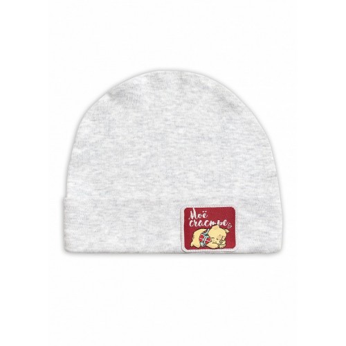 Шапочка. Хлопковая шапочка. Нашика с изображением медвежонка и надпись "Моё счастье".