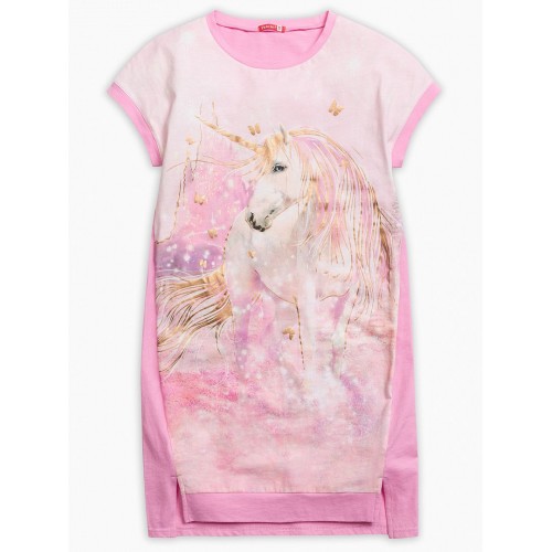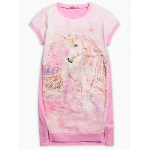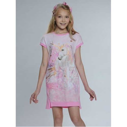 Платье для девочек. Платье свободного объема со спущенной линией плеча; боковые швы переведены на перед.