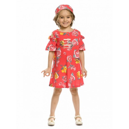 Платье для девочек. НОВИНКА! Более расширенный силуэт трапеция. Открытые плечи, новая форма объёмных рукавов-воланов, собранных на несколько рядов шпульной резины. Центральный принт с золотом.