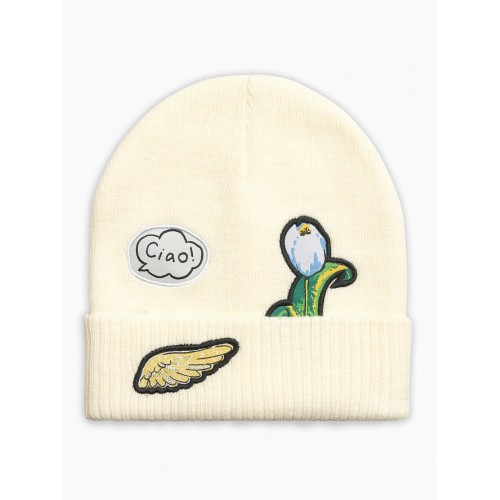 Шапка для девочек. Вязаная, двойная, отворот-вязка "резинка", нашивки.