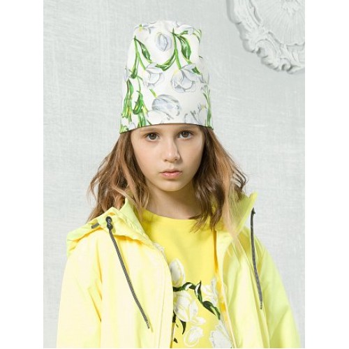 Шапка для девочек. Хлопковый трикотаж с эластаном, двухслойная, без отворота. Принт стойкий, мягкий, первод: "Хорошо выгляжу, хорошо чувствую!"