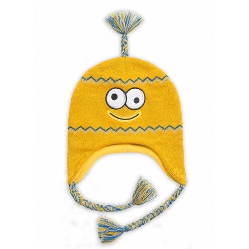 Шапка для мальчиков. Подклад из флиса, вязка жаккард. Декоративные элементы: завязки-косички из цветных ниток.