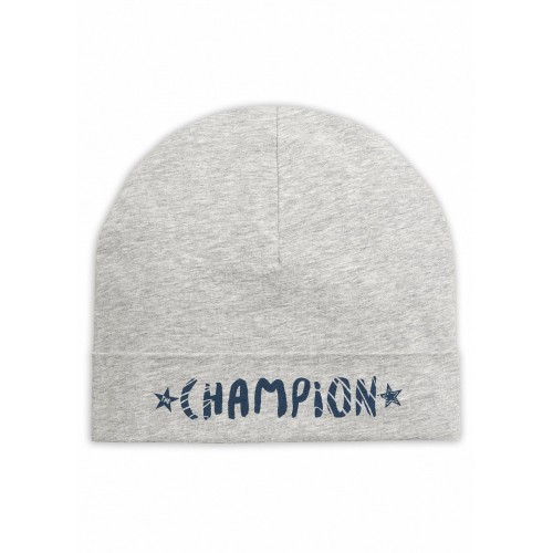 Шапка с отворотом. На отвороте контрастный принт - "Чемпион"