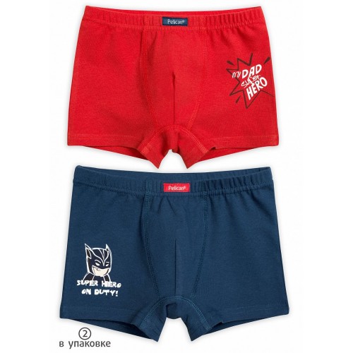 Комплект из 2-х трусов-шортов для мальчиков с принтом супергероя и супергеройскими лозунгами.