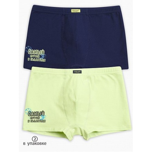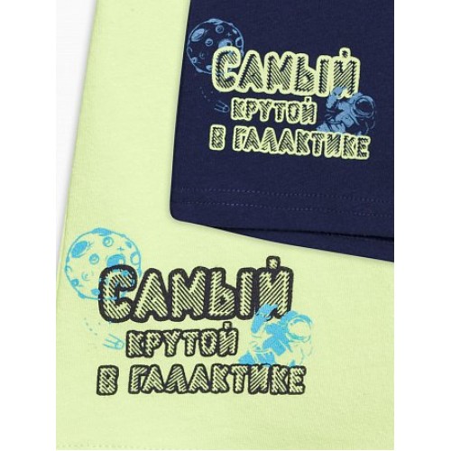 Трусы-шорты для мальчиков. Набор из 2-х трусов. Цвета: яблочный, тёмно-синий. Принт-надпись "самый крутой в галактике" расположен на боковой части изделия, отстрочка в области гульфика.