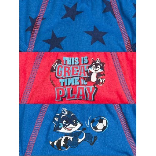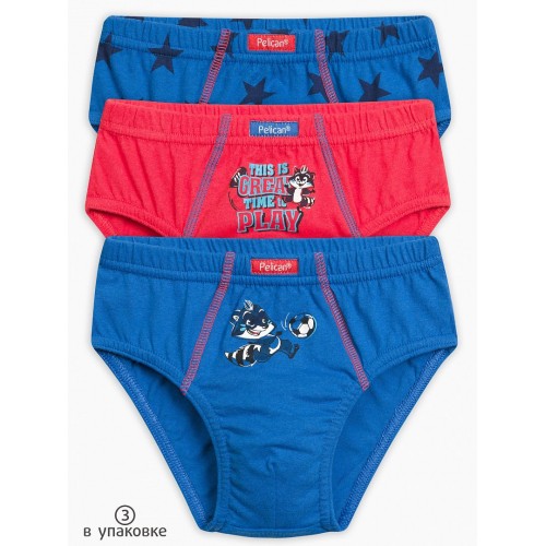 Трусы-слипы для мальчиков. Набор из 3-х трусов. Цвета: индиго, красный. Принт в спортивной тематике, на одном изделии принт all over звёзды. Декоративные строчки на передней части изделия.